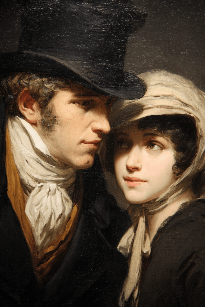 This French artist (1808-1879) is perhaps best known for his caricatures, but he was also a capable painter, and I guess he must have painted a bunch of images set in the early ninteenth century, because you can prompt Midjourney with his name and various Jane Austen characters and get something halfway plausible:
